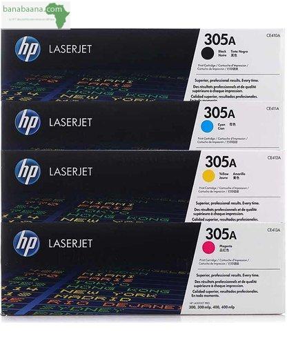LOT DE TONERS HP ORIGINAUX 305A pour imprimante HP LaserJet Pro M351a, 300 M351 / M375 / M451 / M475 et 400. Technologie Colorsphere pour des impressions nettes et éclatantes. Couleurs : Black, bleu, cyan et magenta.