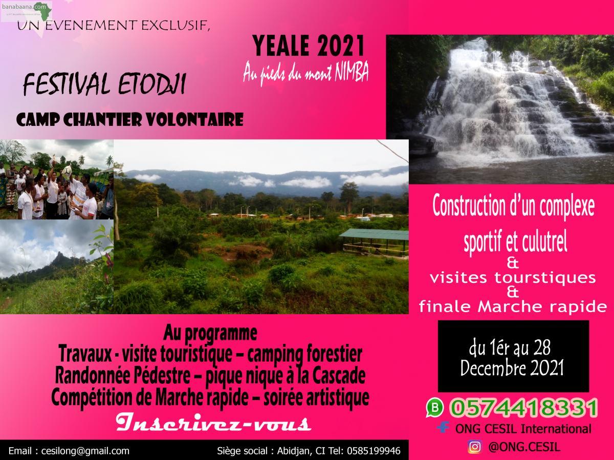 ONG CESIL organise le camp chantier à Yéaleu, au pied du mont Nimba du 1er au 28 Décembre 2021.Les bénévoles et volontaires nationaux et internationaux nous aideront à la pose des premières pierres de la construction d'un centre de formation sportif, culturel et de la technologie innovante. Ce centre qui ouvrira ses portes dans le deuxième semestre de l'année 2022 aura pour objectif d'assurer une formation de haut niveau, exclusivement des jeunes filles âgées de 14 à 17 ans en athlétisme, football, tennis, en golf. Les jeunes filles amoureuses de la danse puiseront dans les valeurs ancestrales pour représenter dignement l'Afrique dans de diverses compétitions internationales. Aussi la finale du festival Etodji 2021 se déroulera sur le site à Yéaleu, dans le département de Danané le 28 Décembre 2021. Les 5 premières filles seront automatiquement retenues pour suivre la formation au centre dès son ouverture officielle, sans frais quelconque. En outre une colonie de fin d'année 2021 est organisé en faveur des jeunes et adultes de la période du 16 au 29 décembre. Les inscriptions ont déjà commencé et se poursuivent tous les jours via : Facebook - Instagram - Whats'App, E-mail ou sur nos numéros. Que vous soyez à Abidjan, Danané ou tout le reste de la Côte d'Ivoire vous pouvez participer à ce camp chantier ou à la colonie à un prix très abordable! Nous invitons particulièrement nos amis des pays occidentaux et orientaux à prendre part au Camp chantier. Les jeunes filles participantes apprécieriont à leur juste valeur les dons, appuis et soutiens des professionnels sportifs, culturels lors de ce camp chantier.