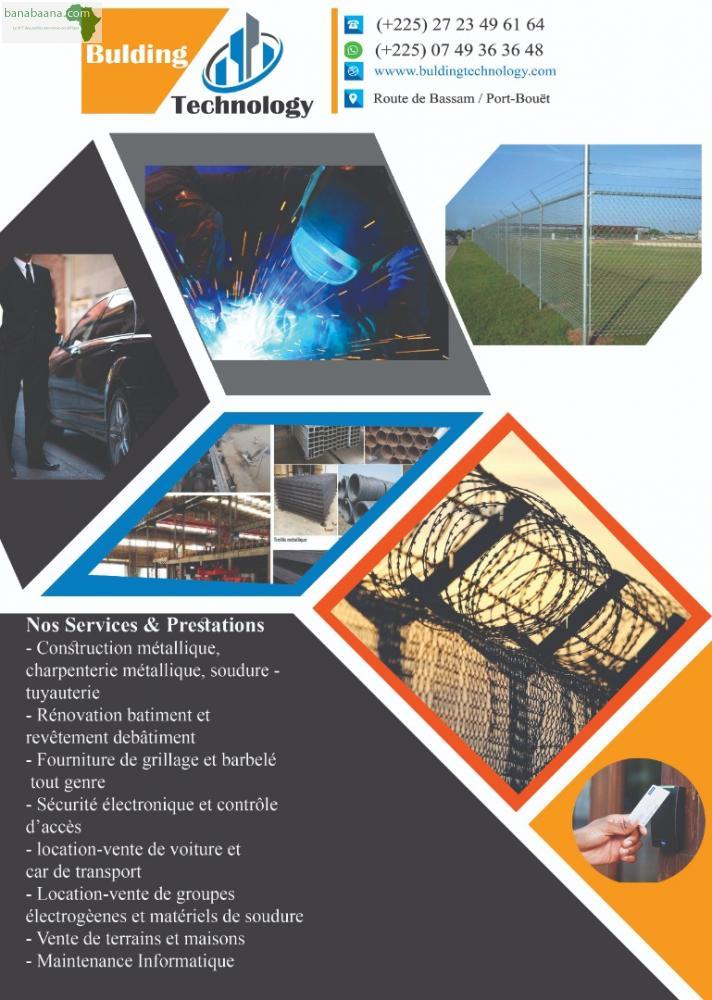 Nous sommes une entreprise qui intervient dans plusieurs domaines d'activités, notre priorité est de fournir des services et matériels de qualité a nos clients : Domaines d'activités: construction métallique, fourniture de grillage et barbelé inox et galvanisé, la sécurité électronique ,location et vente de groupes électrogènes, vente de terrain et maison, la maintenance informatique.