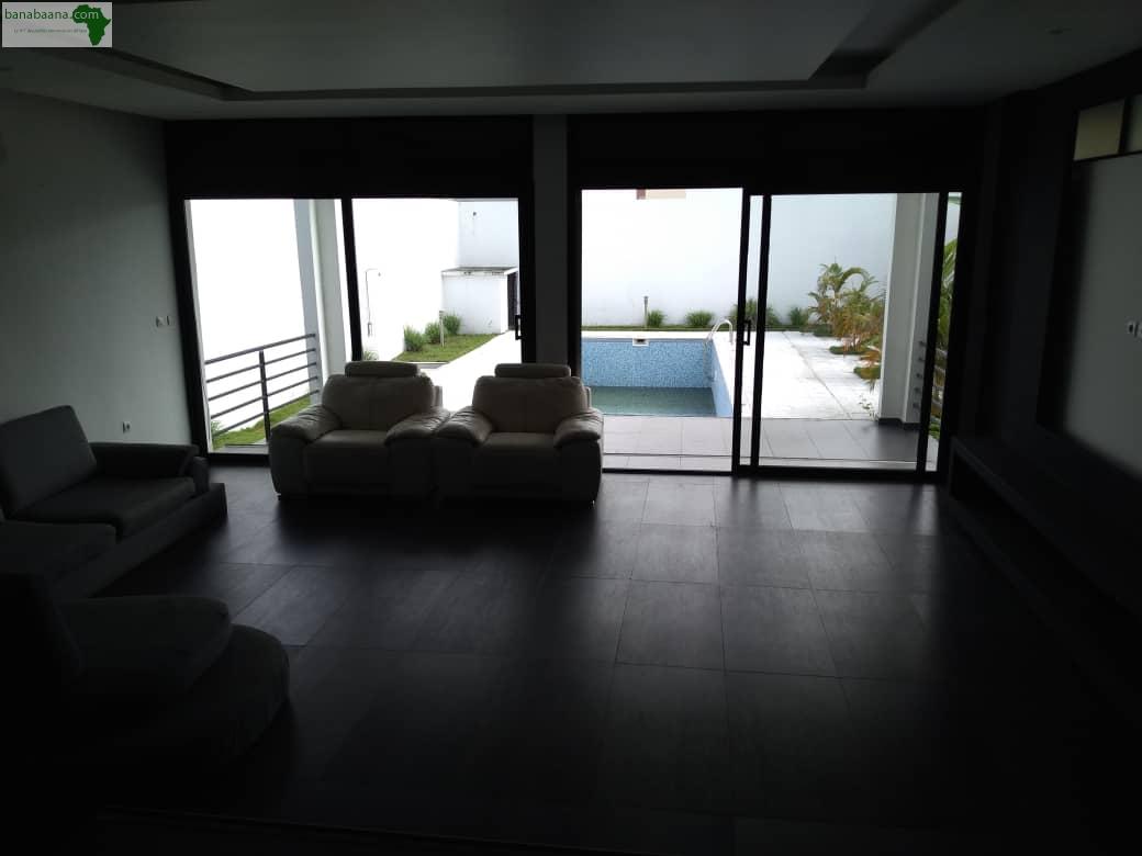 Villa duplex de 6 pièces haut standing en vente à la Riviera m'badon sur 1200 m2. La villa est composée de 4 chambres autonomes, un salon , une salle à manger , un bureau , une cuisine moderne, un grand jardin , un bar , une belle piscine, un garage de 5 voitures , une guérite. Prix : 500 millions à revoir Contacts : 03469481(whatsapp) - 74243666