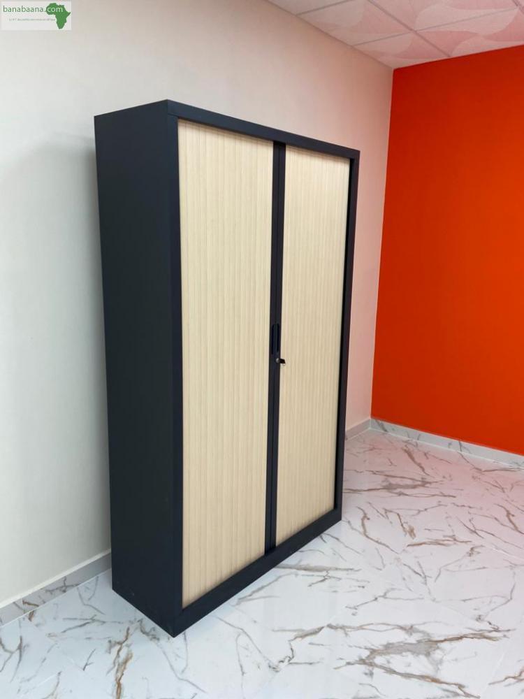 Ce mobilier de bureau d’occasion dispose de rideaux en lamelles PVC capable de s’ouvrir et se fermer totalement. L