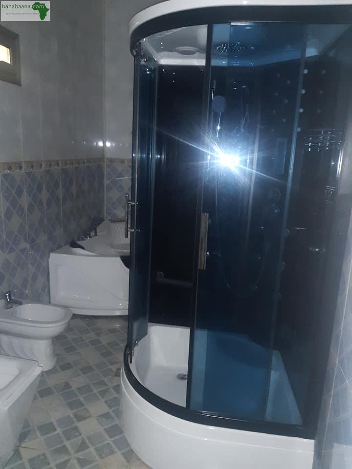 A l'étage : 03 chambres (climatisées), 03 douches, un grand salon (climatisé) et 03 terrasses. Au rez-de-chaussé: 01 chambre (climatisée), 02 douches, un salon (climatisé), une salle à manger, une cuisine et un garage. *️⃣ Annexe : une chambre salon douche, un magasin et 02 douches externes. Il y'a l'eau (forage) et l'électricité. Acces : très facile