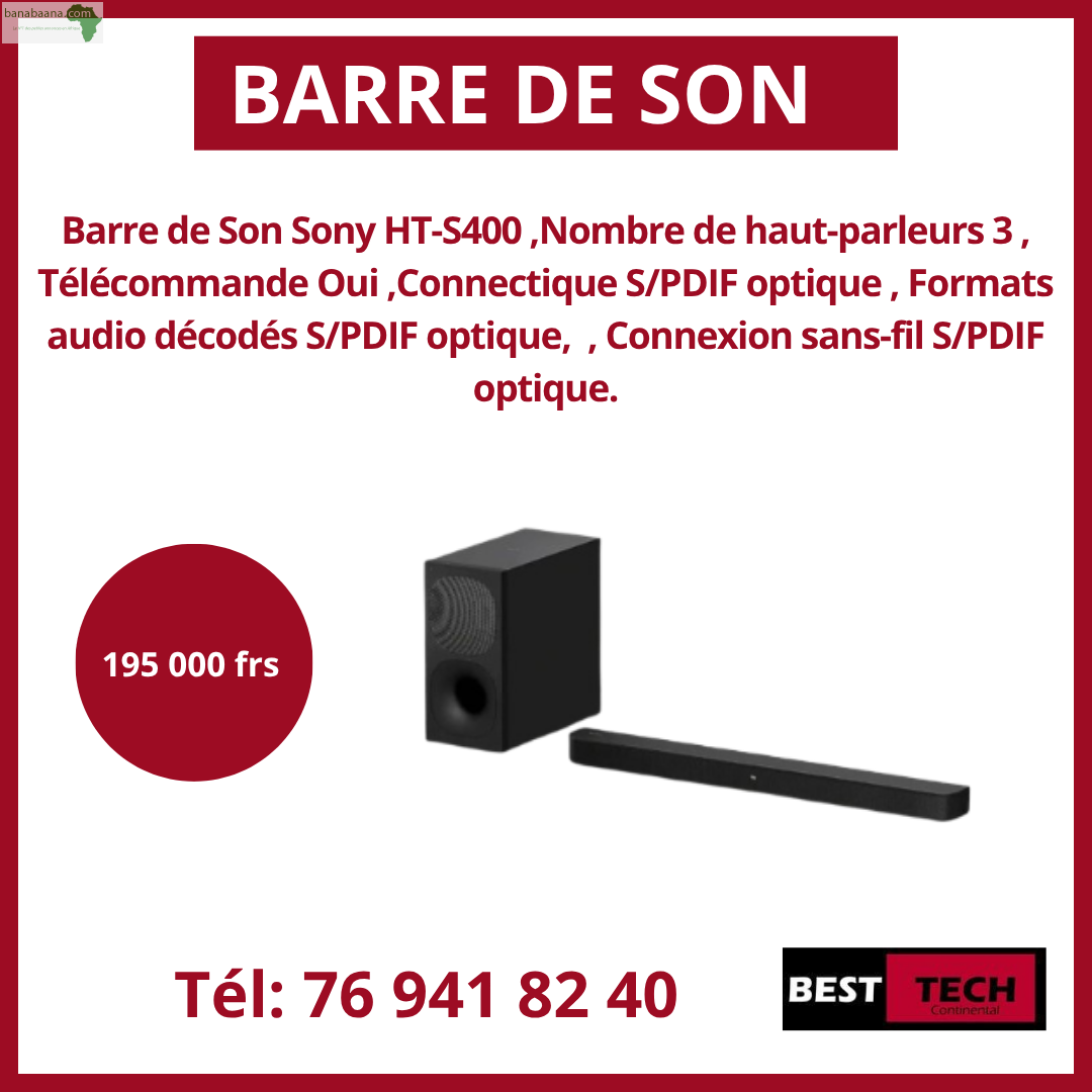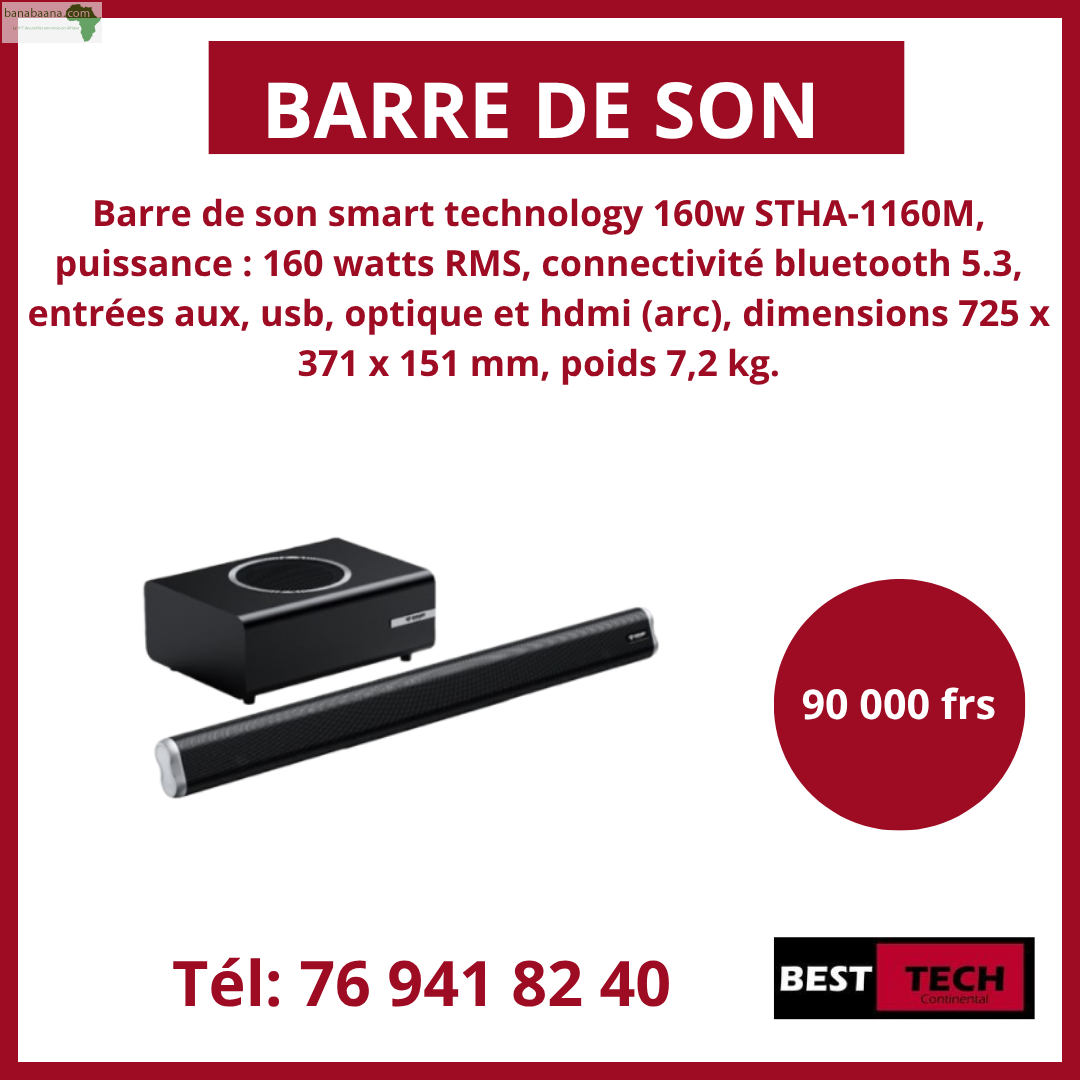Chers client, Best continental vous propose des BARRES DE SON de bonne qualité, pour obtenir une meilleure expérience audio de bien meilleure qualité sur son téléviseur.Profité de la promo du moment. PRODUIT GARANTI LIVRAISON PARTOUT A DAKAR