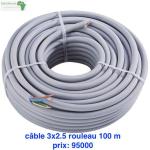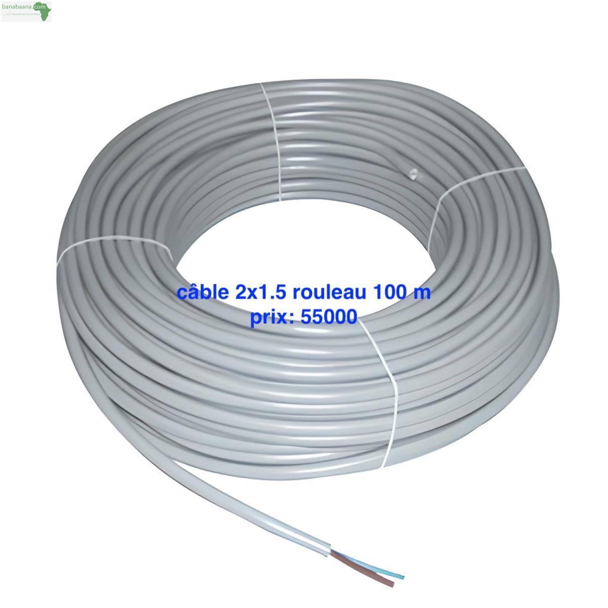- Câbles électriques disponibles rouleau de 100m - câble 2x0.75 original : prix: 30000 Frs - câble 2x0.75 de 2èm choix: prix: 25000 Frs - câble 2x1.5: prix: 55 000 Frs - câble 2x2.5: prix: 69 000 Frs - câble 3x1.5: prix: 60 000 Frs - câble 3x2.5: prix: 95 000 Frs .