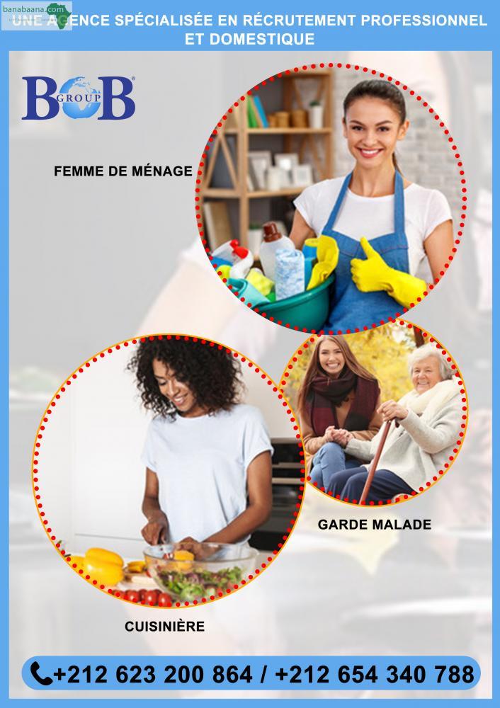 Nous mettons à votre disposition un personnelle de maison qualifié et choisi selon vos différentes exigence Besoin d’une femme de ménage pour vous assister dans vos tâches quotidiennes, une nounou polyvalente pour garder vos enfants assurer les tâches ménagères et faire à manger Une cuisinière professionnelle ou polyvalente, je vous trouve le profil souhaité en tout point et en toute sécurité toute nationalité je vous garantis une prestation 100 % satisfaisante avec possibilité de changement en cas d'insatisfaction. Nos services sont valables pour tout le royaume ainsi qu’à l’étranger. Pour tout renseignement nous joindre au numéro suivant