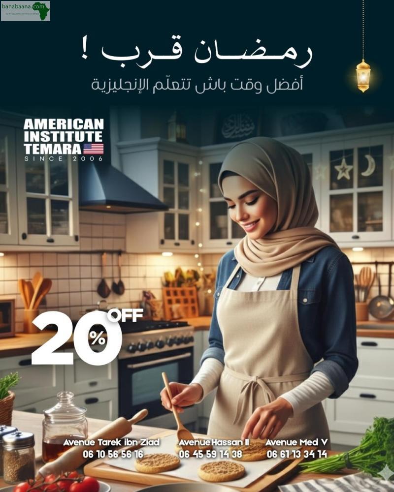 بغيت تعلم الإنجليزية بسرعة وبطريقة شخصية؟ المعهد الأمريكي تمارة كيوفر ليك دروس فردية خاصة حسب المستوى ديالك والأهداف ديالك تقدم سريع طريقة تفاعلية أستاذ مخصص غير ليك ما تضيعش الوقت، سجّل دابا وخلي الإنجليزية تولي سلاح النجاح ديالك! ثلاثة مراكز فتمارة للحجز والاستفسار: 06 10 56 56 16 | 06 45 59 14 38 |