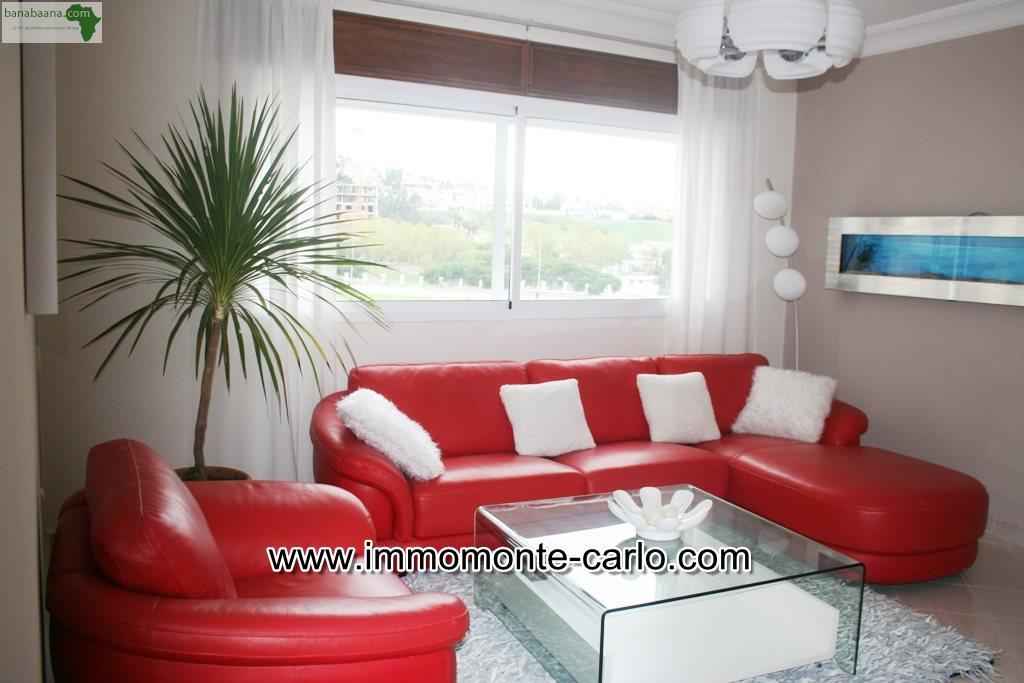 Location appartement meublé avec grande terrasse au quartier Hay Riad, appartement Haut standing avec chauffage et climatisation dans toutes les pièces, sans vis-à-vis, situé au dernier étage avec ascenseur dans une résidence fermée avec jardin, sécurisée 24/24, dans un endroit calme et proche de toutes commodités, composé de double salon avec cheminée, séjour, salle d’eau des invités, terrasse, suite parentale avec dressing, salle de bain et balcon, deux chambres avec salle de bain et balcon, une cuisine équipée, buanderie, débarras, salle d’eau du personnel, deux places de voiture au garage et un box….