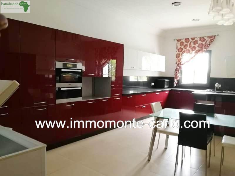 À louer villa meublée à Rabat au quartier Souissi. Dans un environnement privilégié, villa bien meublée avec piscine privée jardin chauffage et climatisations. Idéalement située dans un quartier résidentiel, bénéficiant de prestations haut de gamme, villa lumineuse beaux volumes aux grandes baies vitrées sans aucune vis à vis et superbe vue sur le jardin, piscine. Mobiliers contemporains et de grandes qualités, située sur une rue tranquille Villa construite sur 2 niveaux, composée