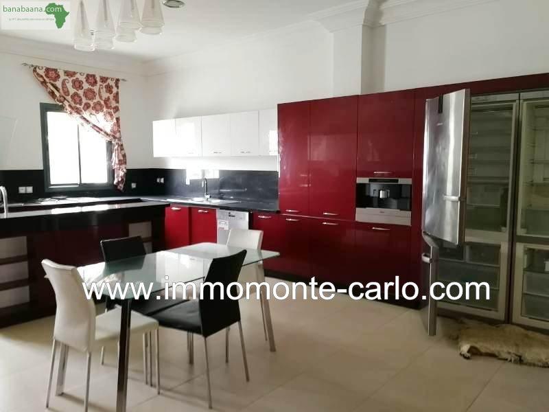 À louer villa meublée à Rabat au quartier Souissi. Dans un environnement privilégié, villa bien meublée avec piscine privée jardin chauffage et climatisations. Idéalement située dans un quartier résidentiel, bénéficiant de prestations haut de gamme, villa lumineuse beaux volumes aux grandes baies vitrées sans aucune vis à vis et superbe vue sur le jardin, piscine. Mobiliers contemporains et de grandes qualités, située sur une rue tranquille Villa construite sur 2 niveaux, composée